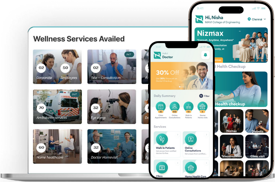 Nizcare seamlessly integrates with the healthcare ecosystem, connecting doctors, patients, hospitals, and clinics through innovative AI-powered solutions. Our technology streamlines processes, enhances practice efficiency, and drives growth, while boosting patient visits, improving retention rates, and elevating brand visibility. By leveraging AI to optimize healthcare operations, we improve patient outcomes and enhance the overall quality of care, making Nizcare the trusted partner for healthcare professionals.